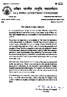 Celotno pismo predsednika Vse-indijskega ajurvedskega kongresa: